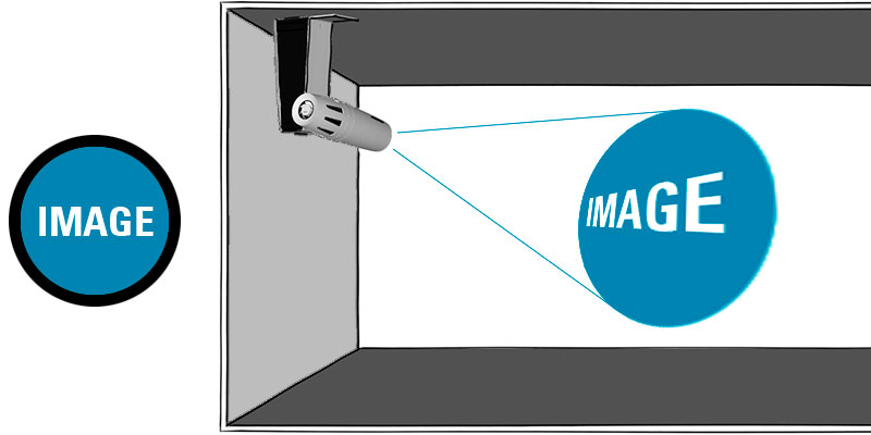 If the projector is not aligned perpendicular to the screen, the projected image is significantly distorted. This is due to a physical phenomenon that can lead to impressive visual effects. But when a distortion is unwanted, an artificial distortion can be created in the artwork on the gobo which compensates the original distortion. Now the projected images appears undistorted in the eyes of the viewer. This procedure is called keystone correction, named after the trapezoidal keystone in an arch. Keystone correction can compensate distortion in the horizontal and vertical axis, up to a deviation of 45°!