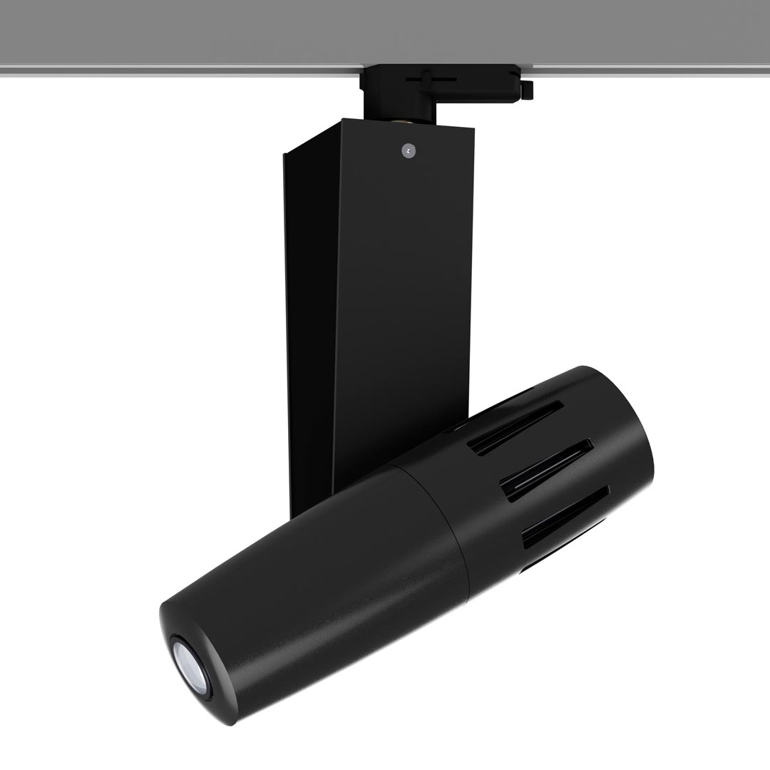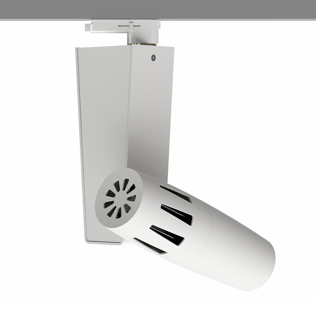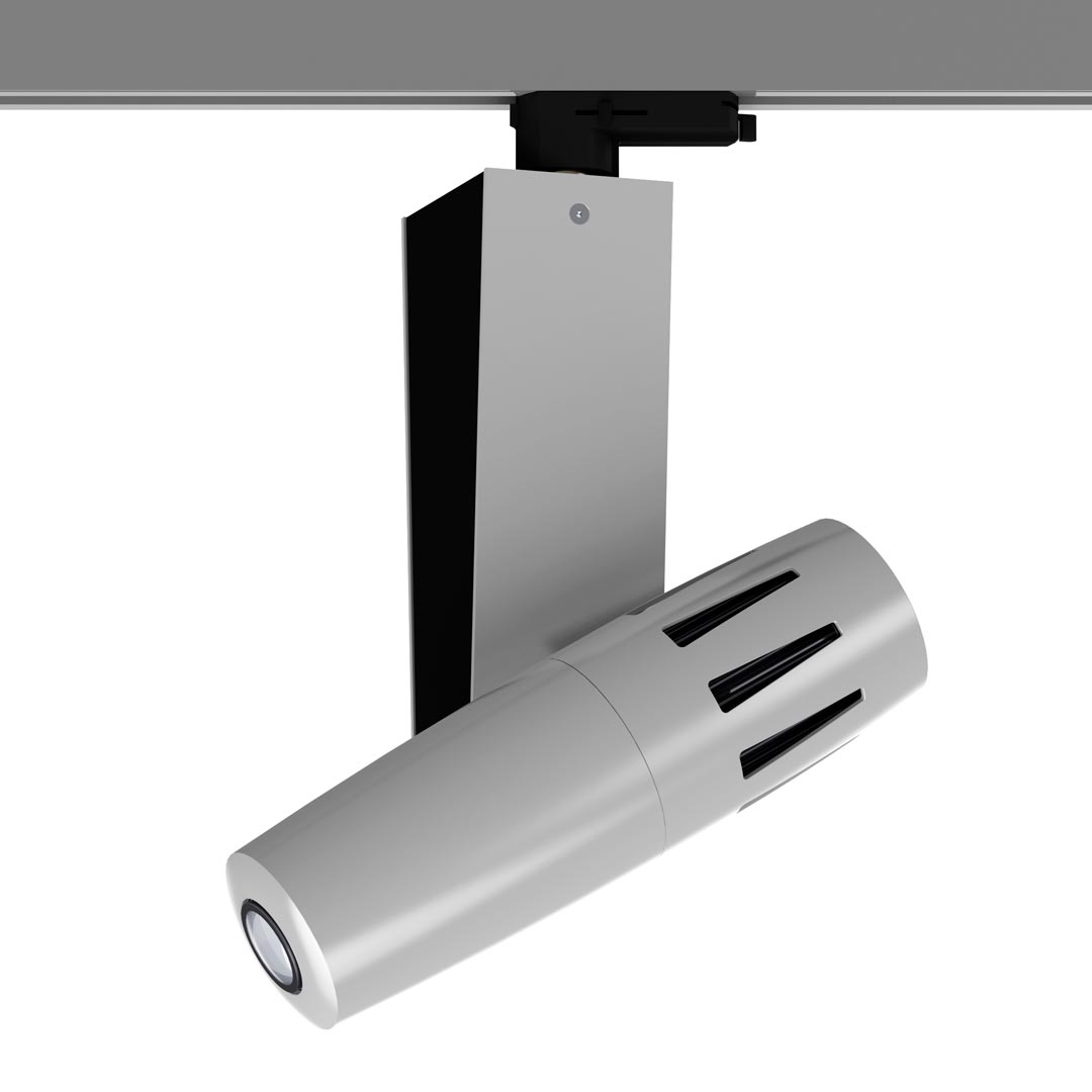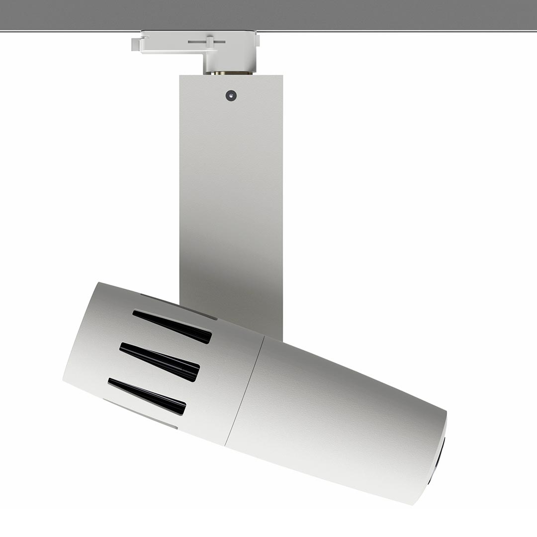 PHOS 85 LT is the most powerful projector for 3-circuit lighting tracks and its 80 watts High-Power LED provides uncompromised brightness, which guarantees a brilliant and crisp projection in almost any situation. PHOS 85 LT is the optimal solution, when the ambient light is brighter, when projecting on coloured or dark surfaces or when colourful artworks are to be displayed. The device is equipped with a noise-optimized fan which dissipates the heat of the heat sink. PHOS 85 LT is designed for flexible use in track lighting systems. Recommended locations include: museums, trade fairs, shopping malls or large lobbies. The projection motif (gobo) can be changed without tools.
